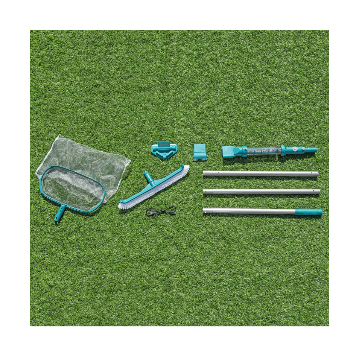 - Kit complet pour l'entretien de piscine : Comprend un aspirateur de fond, une épuisette de surface, une perche télescopique en aluminium de 2,79 m et un tuyau de connexion de 7,5 m