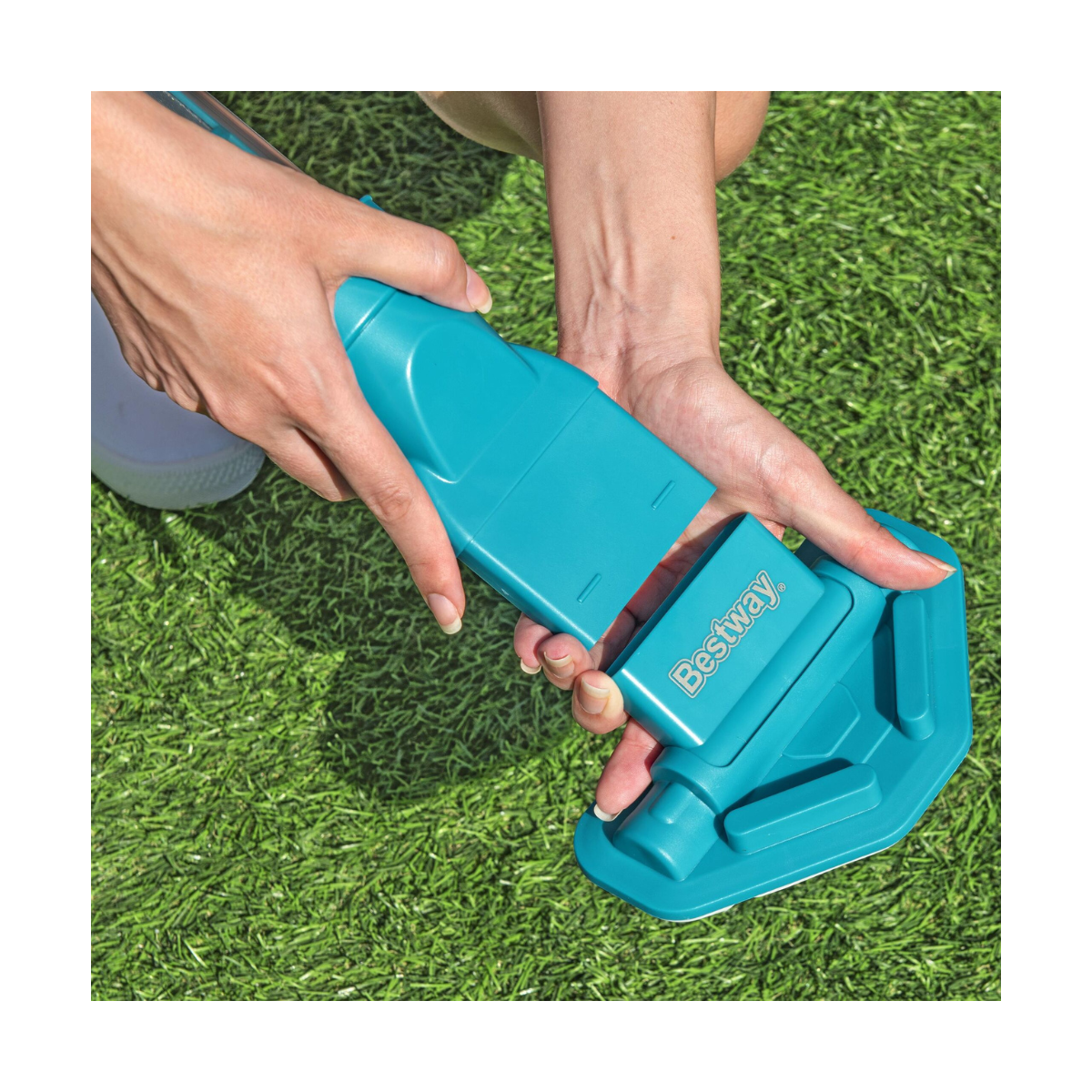 - Aspirateur de fond : Conçu pour se connecter directement à la pompe de filtration, il aspire les impuretés déposées au fond du bassin. Son système d'aspiration permet de capturer efficacement les débris, les algues et autres particules indésirables. Un sac à débris lavable et réutilisable est inclus pour collecter les saletés.