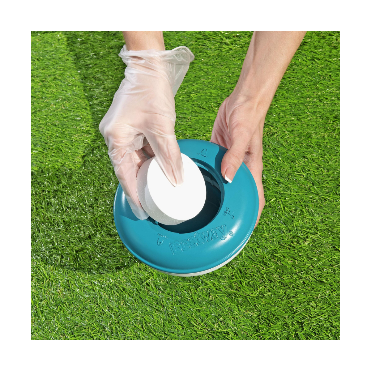Mise en place : Placez le distributeur à la surface de l'eau et laissez-le flotter librement pour une diffusion uniforme des produits chimiques.