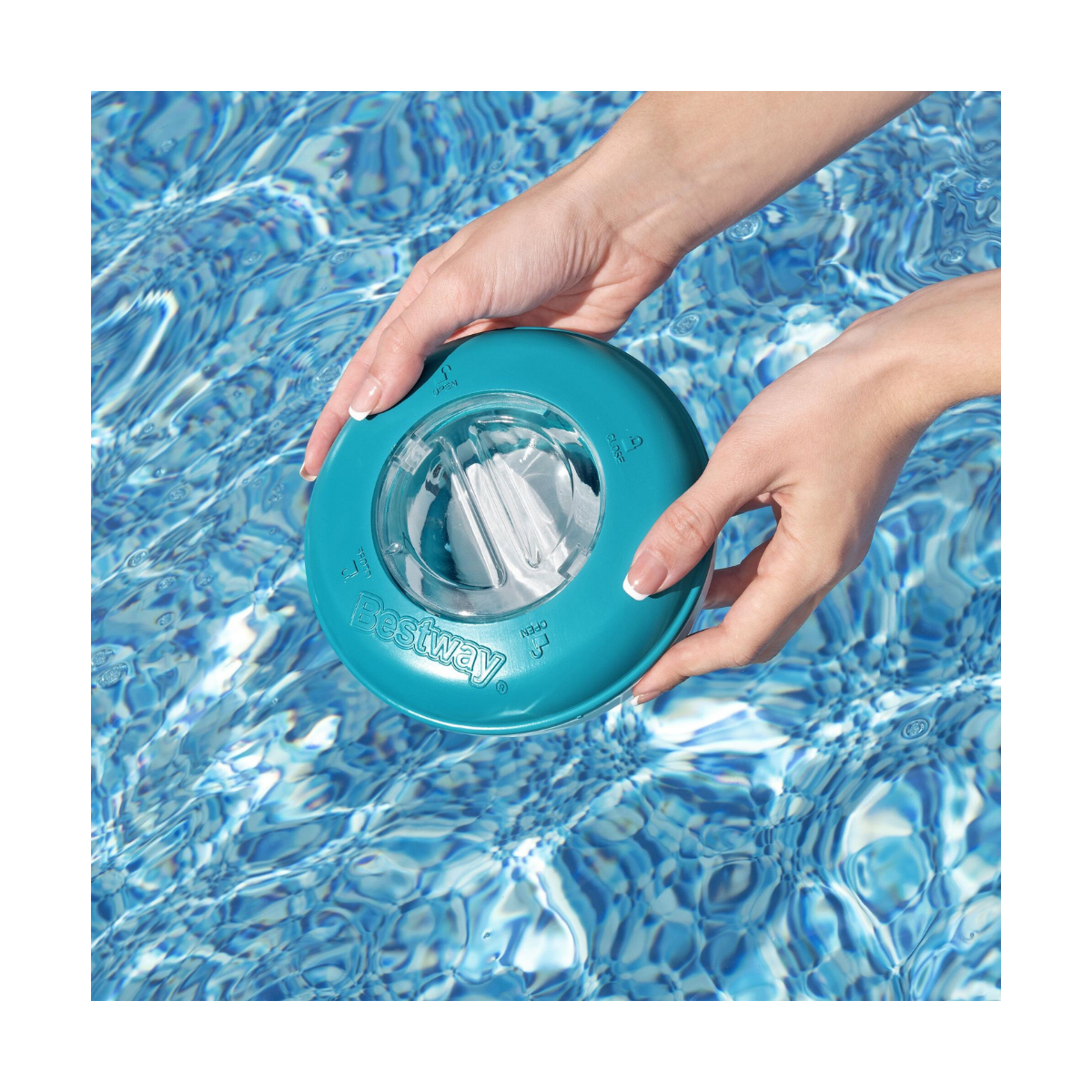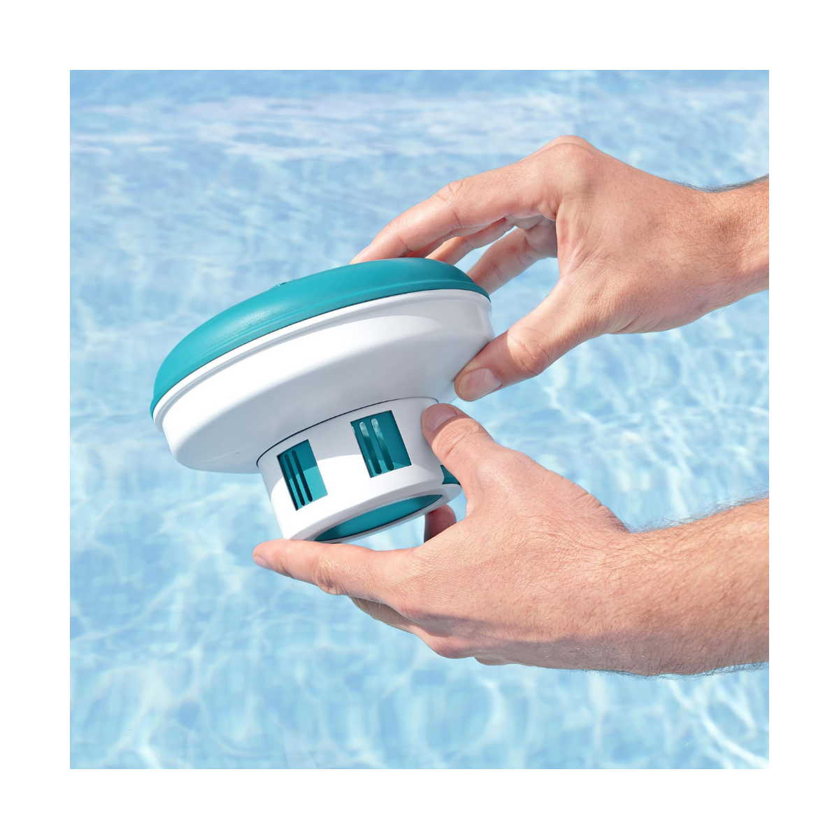 - Design flottant : Sa conception lui permet de flotter librement à la surface de l'eau, assurant une distribution uniforme des produits chimiques dans l'ensemble du bassin