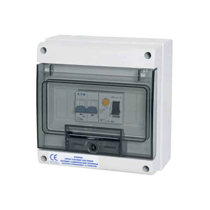 Coffret électrique 10 A Monophasée spécialement conçu pour la protection d'une pompe à chaleur de piscine.