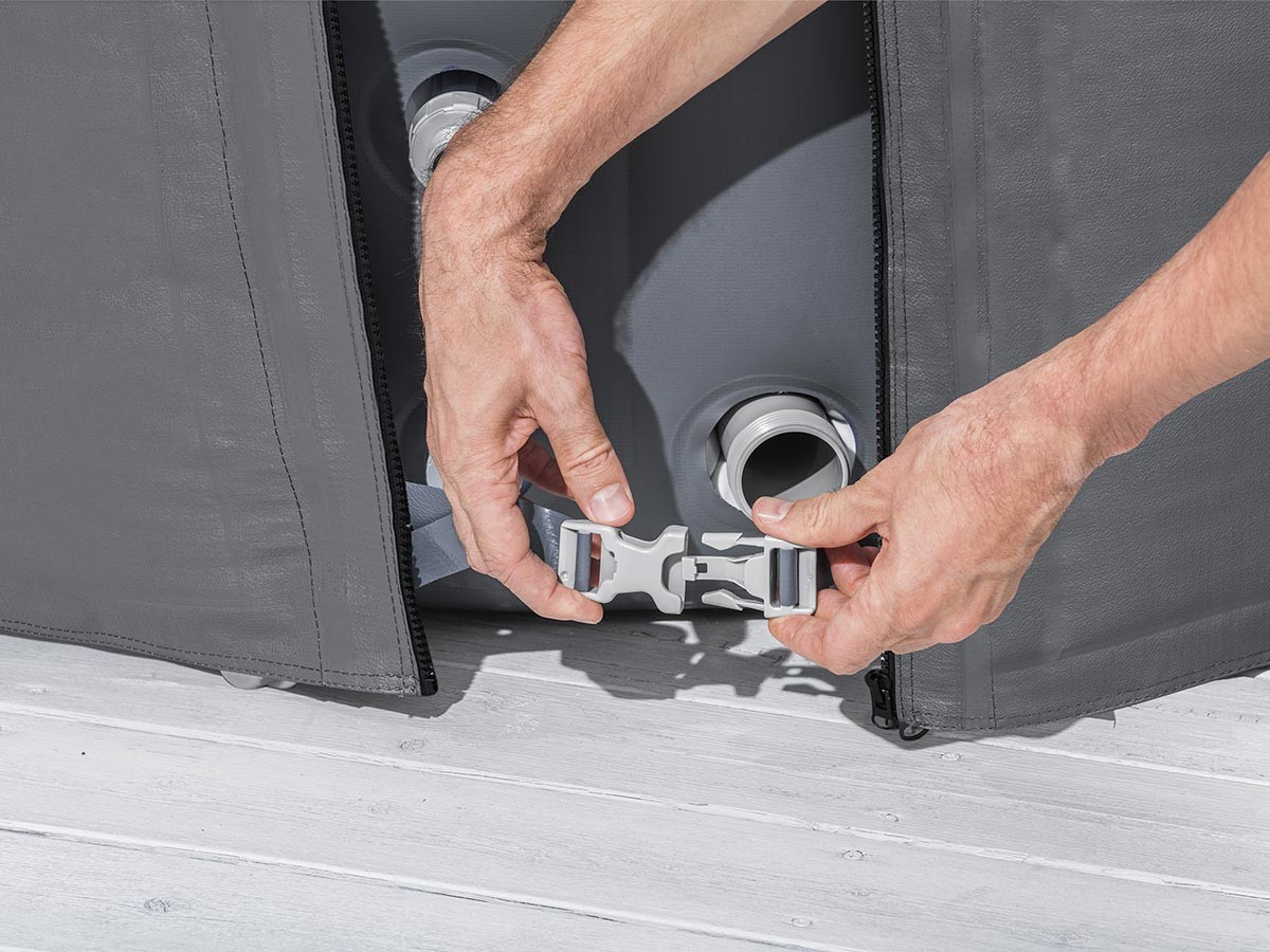 Dotée d'une ouverture à glissière pratique, cette couverture thermique facilite l'accès à la pompe intégrée ou externe sans nécessiter son retrait complet. Son ajustement universel et ses clips de verrouillage de sécurité garantissent une fixation stable et sécurisée, adaptée aux spas ronds jusqu'à 1,80 m de diamètre. Avec un poids de 5,61 kg, elle reste légère et facile à manipuler, tout en offrant une isolation thermique supérieure grâce à sa double couche de coton isolant et son traitement anti-moisissure.