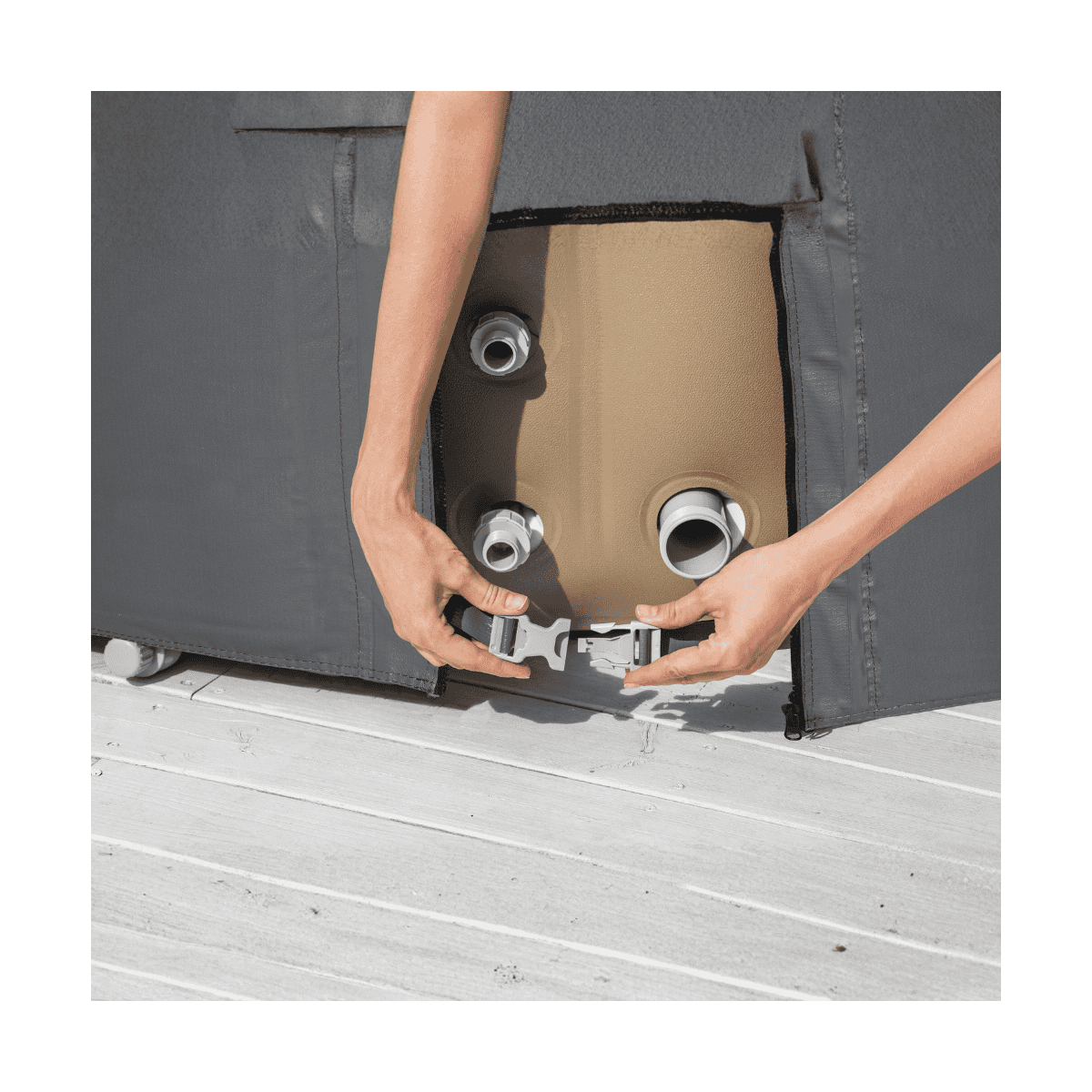 - Fabriquée en DuraPlus™, un matériau résistant aux UV et hydrofuge, cette couverture est conçue pour résister aux intempéries et à un usage intensif. Son traitement anti-moisissures garantit une hygiène irréprochable, préservant la qualité de l’eau et prolongeant la durée de vie de votre spa.