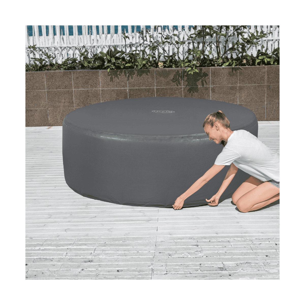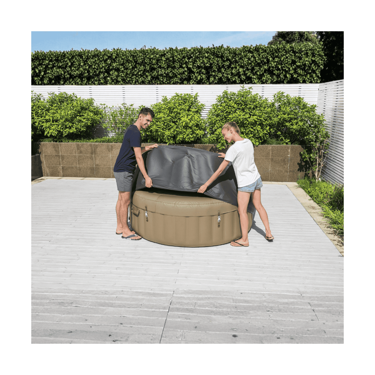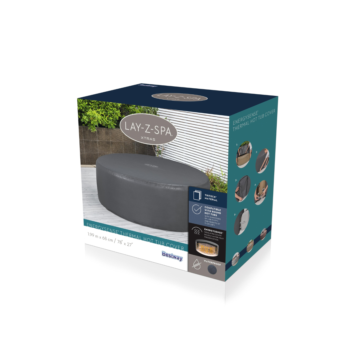 - Son design pratique inclut une fermeture éclair pour un accès facile à la pompe, ainsi que des agrafes de verrouillage et des sangles réglables pour une fixation sécurisée. Léger et facile à manipuler, ce modèle s’adapte parfaitement aux spas ronds de 196 cm de diamètre, offrant une compatibilité optimale avec une large gamme de modèles Lay-Z-Spa et SaluSpa.