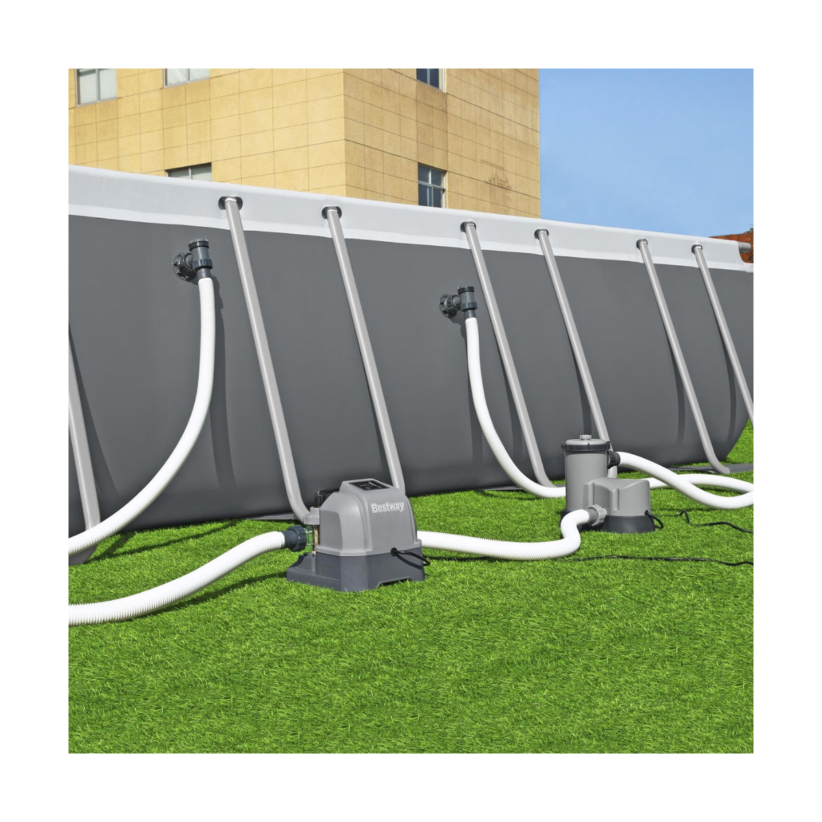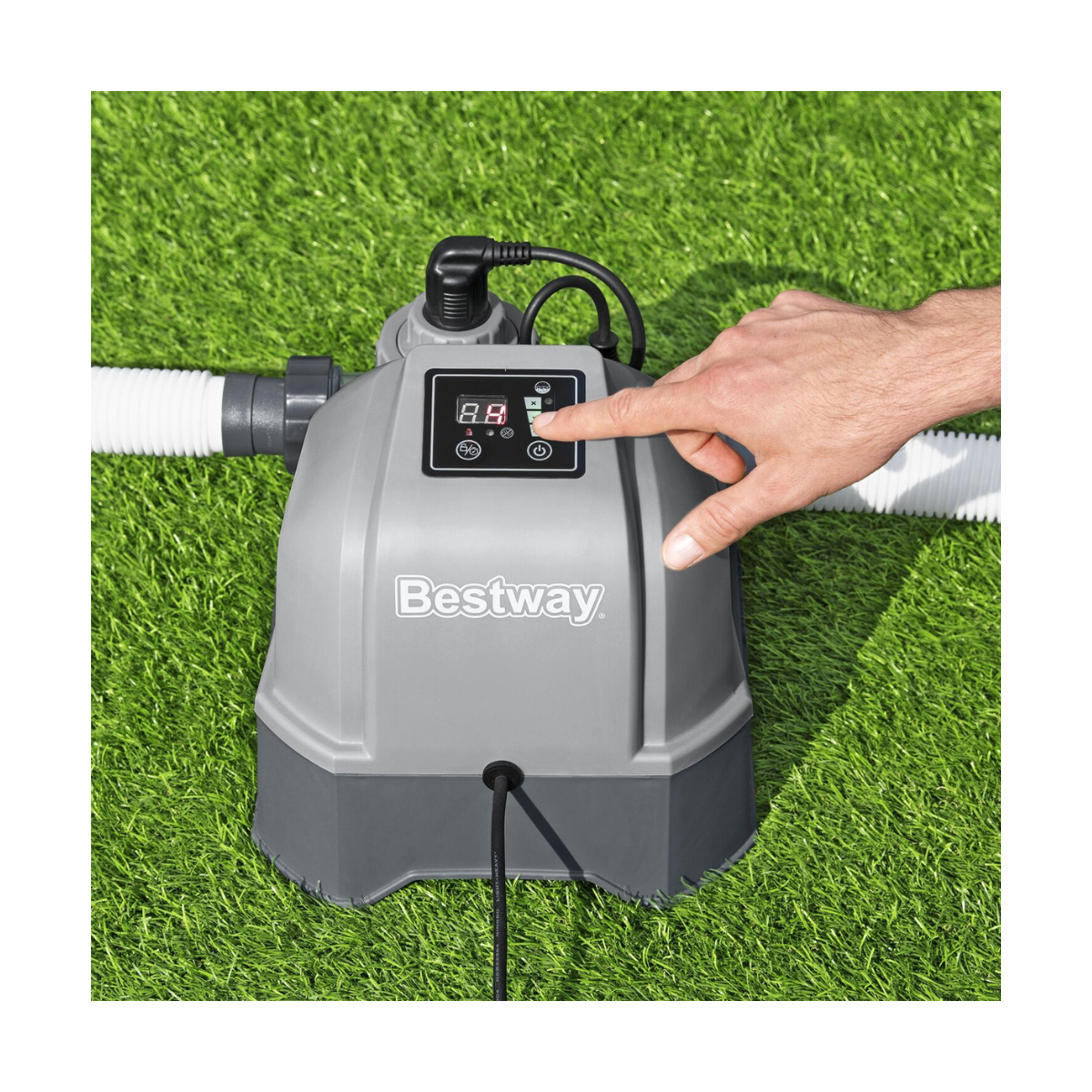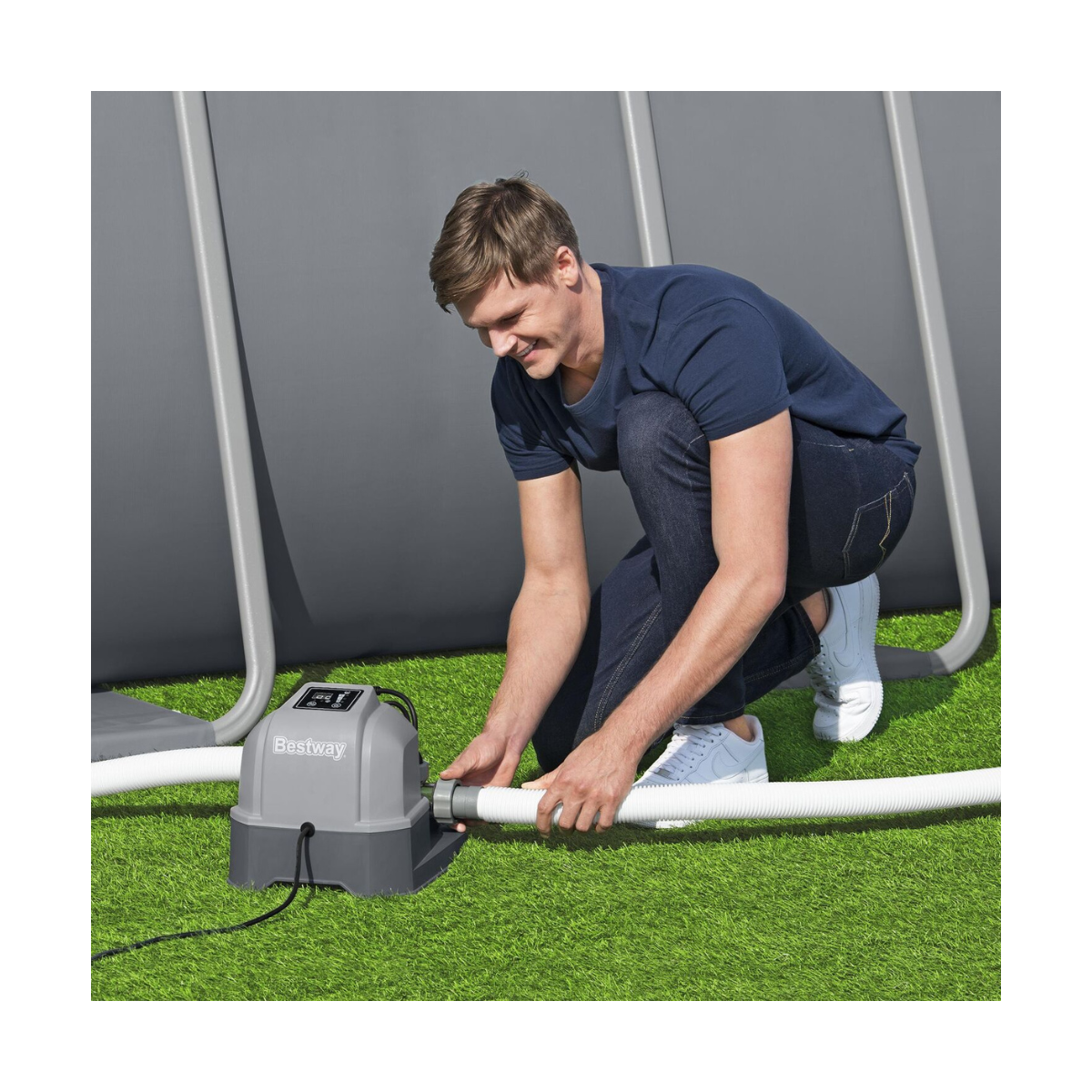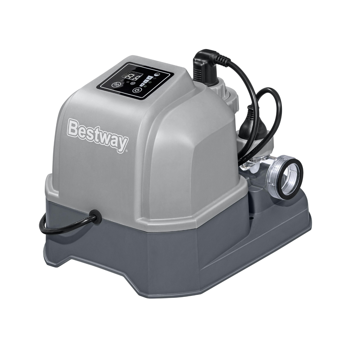 Ce chlorinateur d'eau salé développé par Bestway dispose d'une capacité de produciton de 6g de chlore par heure, lui permettant d'être idéalement adapté pour toutes les piscines hors sol (Intex, Gre, Bestway), jusqu'à 26 m3.
