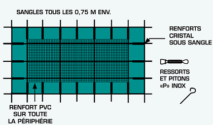 - Quadrillage de sangles polyester tous les 0,75 m env.