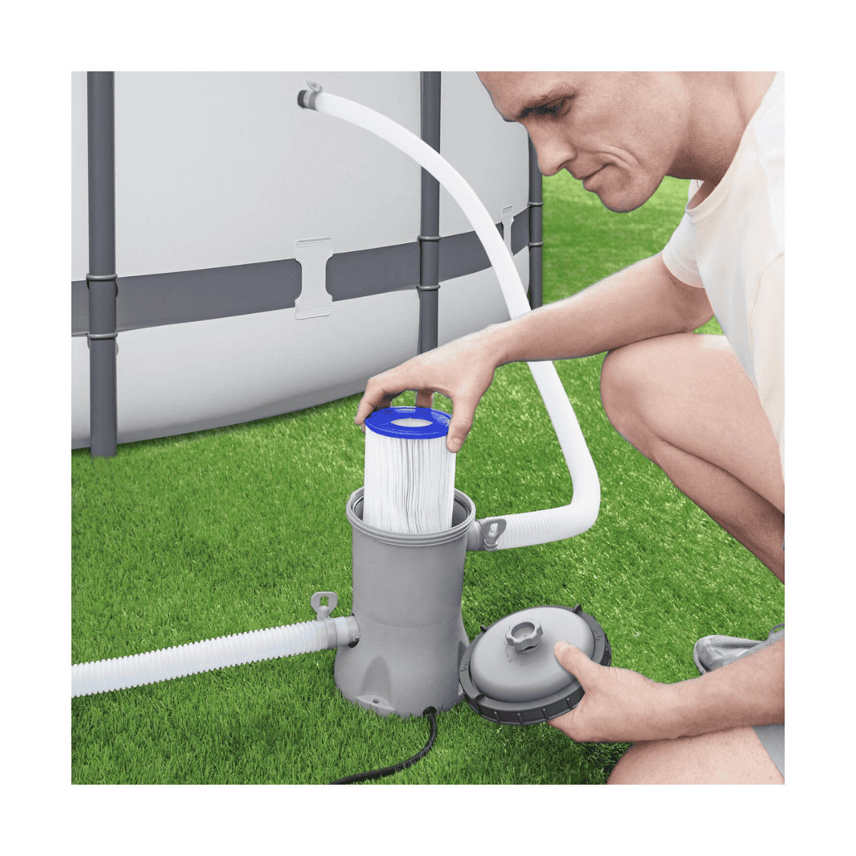 Conçu pour des bassins allant de 1 100 à 17 400 L, ce filtre s'adapte à une grande variété de piscines hors-sol, vous permettant de remplacer facilement votre ancien système de filtration, qu'il s'agisse d'un filtre à sable ou à cartouche traditionnel.