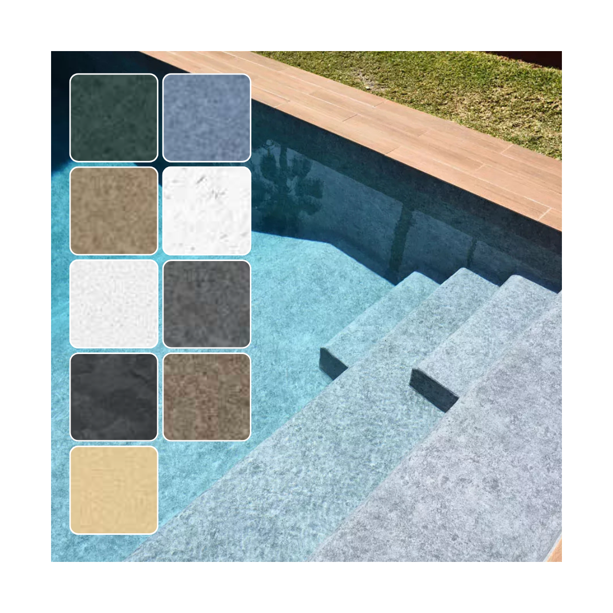 La membrane AQUASENSE dispose d’une surface texturée et vernie qui apporte un rendu esthétique réaliste et un toucher structuré. Un film protecteur intégré renforce la protection contre les taches, l’usure et les agressions du quotidien, permettant de préserver durablement l’aspect du revêtement. Cette finition facilite également l’entretien du bassin tout en maintenant une excellente tenue des décors.