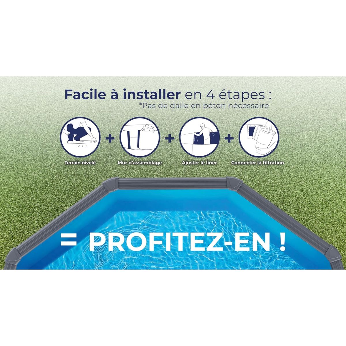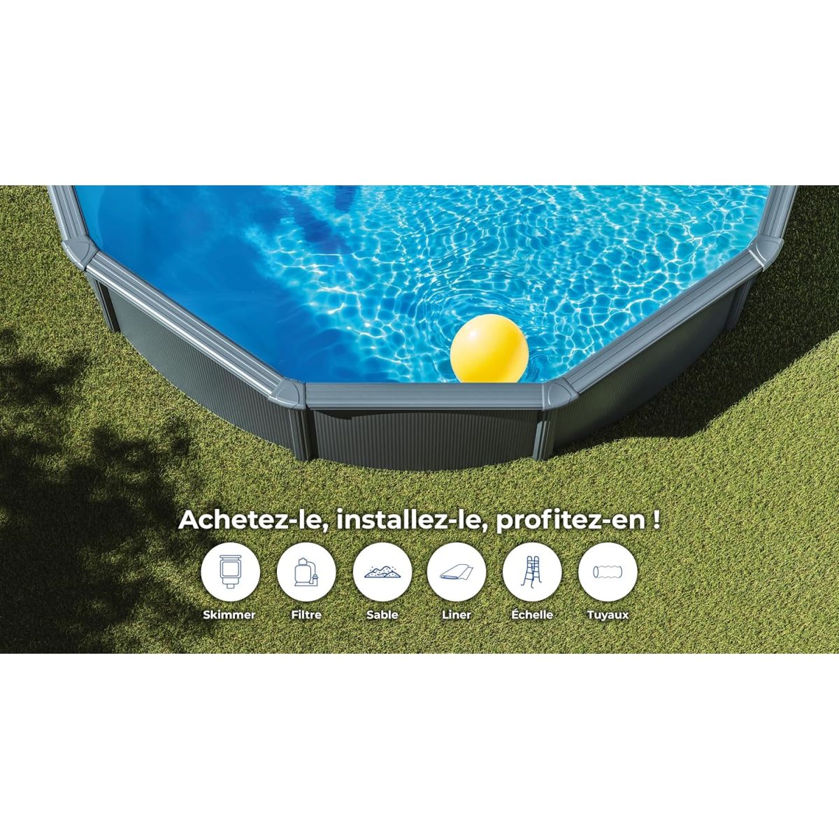 - Kit piscine livré complet, prêt à monter