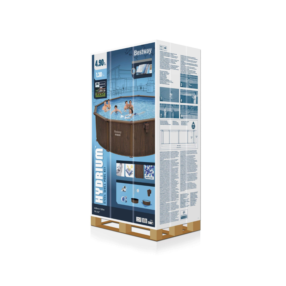 La piscine acier hors sol ronde Hydrium™ Ø 523 x H 130 cm effet bois est livrée avec tous les accessoires nécessaires à son installation et à son entretien. En moins de 3 heures, elle est prête à accueillir toute la famille pour des baignades en toute tranquillité.