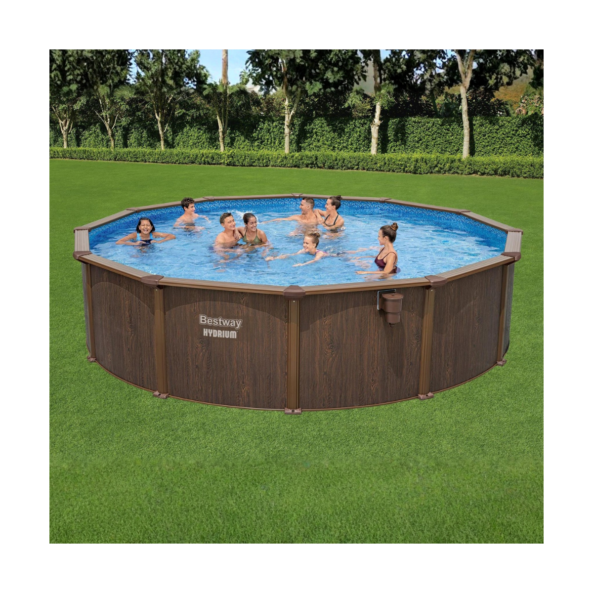 Offrez-vous des baignades inoubliables avec la piscine acier hors sol ronde Hydrium Ø 572 x H 132 cm effet bois de Bestway. Robuste, élégante et simple à installer, elle combine performance et esthétisme pour un plaisir durable dans votre jardin, été après été.