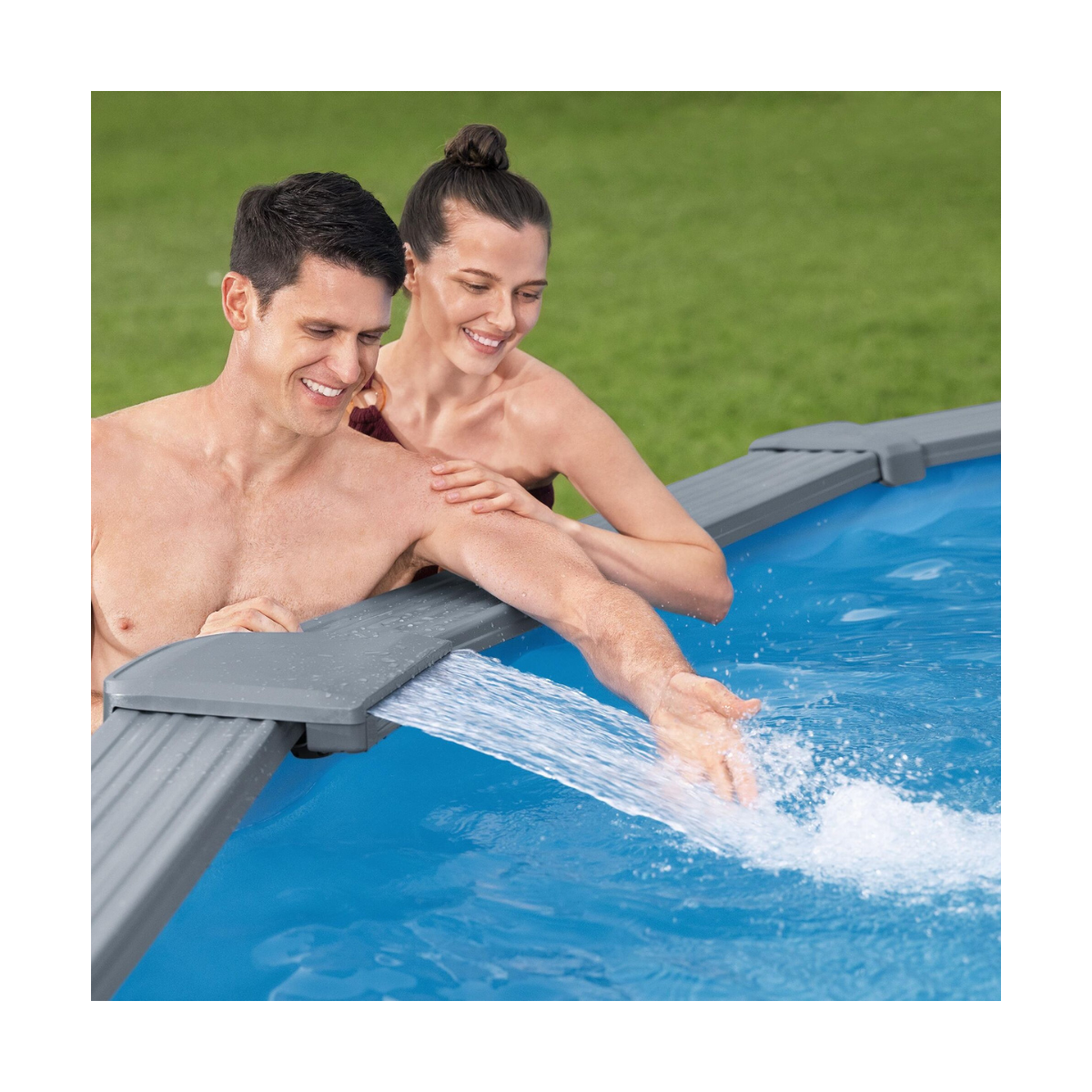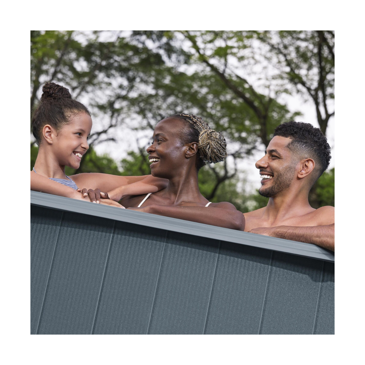 - Kit complet : piscine, pompe à sable, échelle Flip & Lock™, bâche, tapis de sol, diffuseur ChemConnect™ et cascade LED multicolore