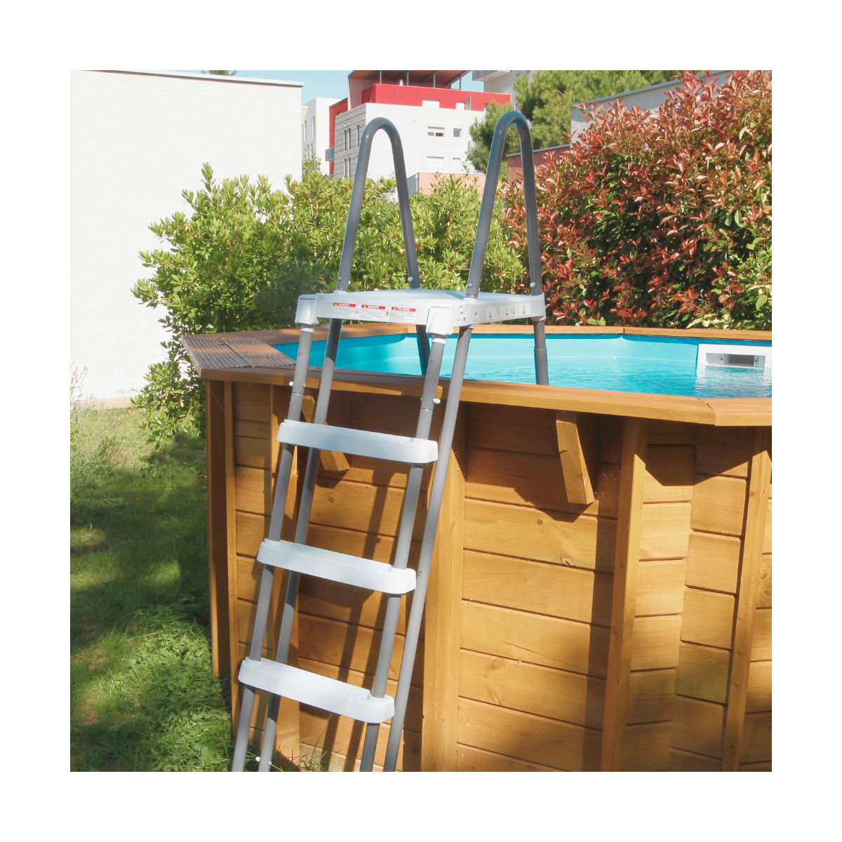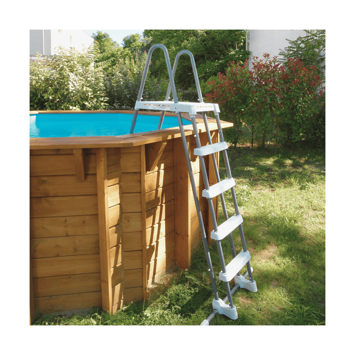 L’échelle fournie possède un côté extérieur amovible afin de limiter l’accès non surveillé au bassin, un atout essentiel pour la sécurité des enfants. Le côté intérieur permet une sortie confortable et sécurisée.