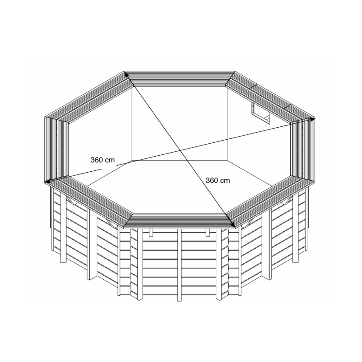 | Sunwater Ø 360 x H 120 cm | Octogonale | 6,7 m² | 1,20 m | 7,5 m³ | 2,5 m³ /h | Bois |