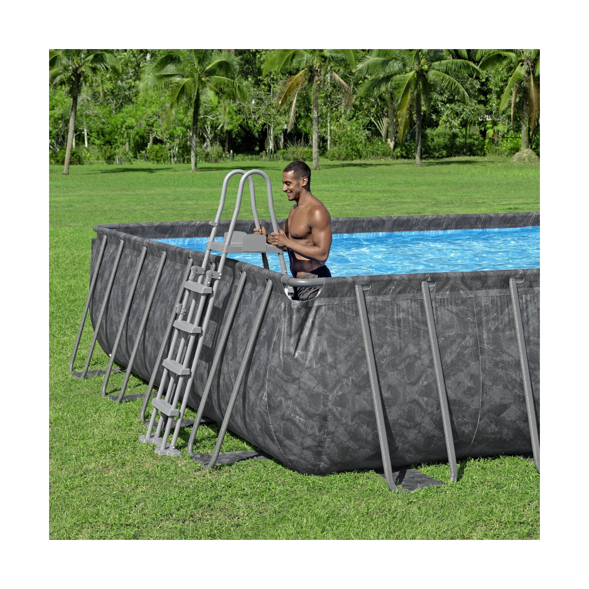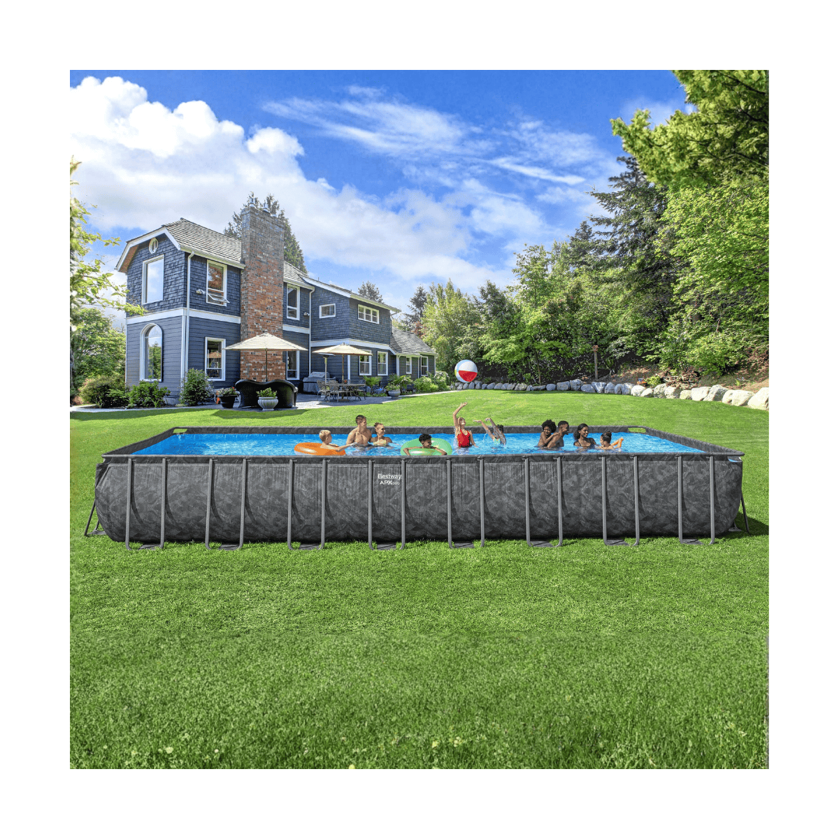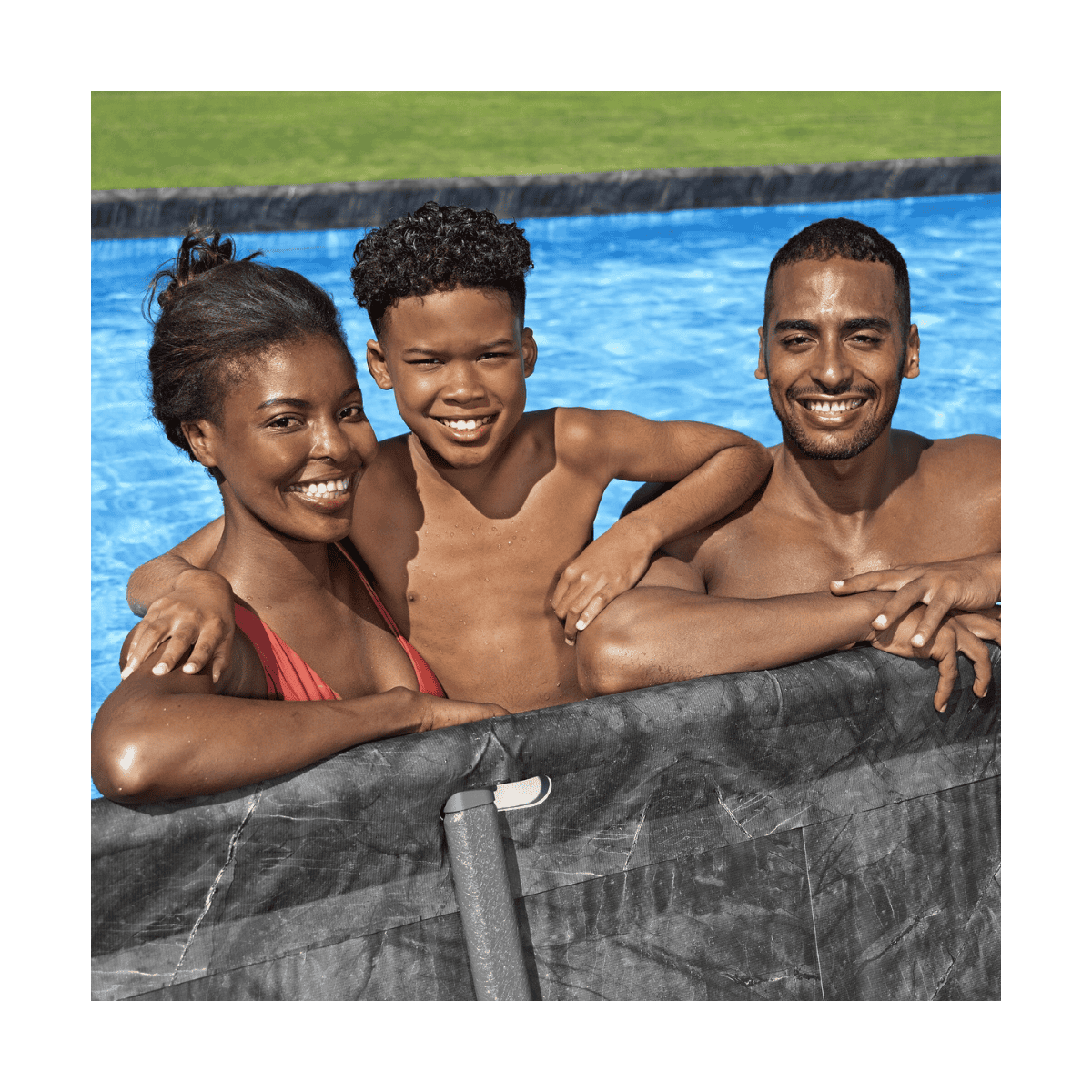 La piscine Bestway® APX 365™ avec son liner externe effet marbre foncé et intérieur en marbre bleu allie design moderne et élégance. Son aspect haut de gamme s’intègre parfaitement à tous les jardins, offrant autant un espace de baignade qu'un élément décoratif.