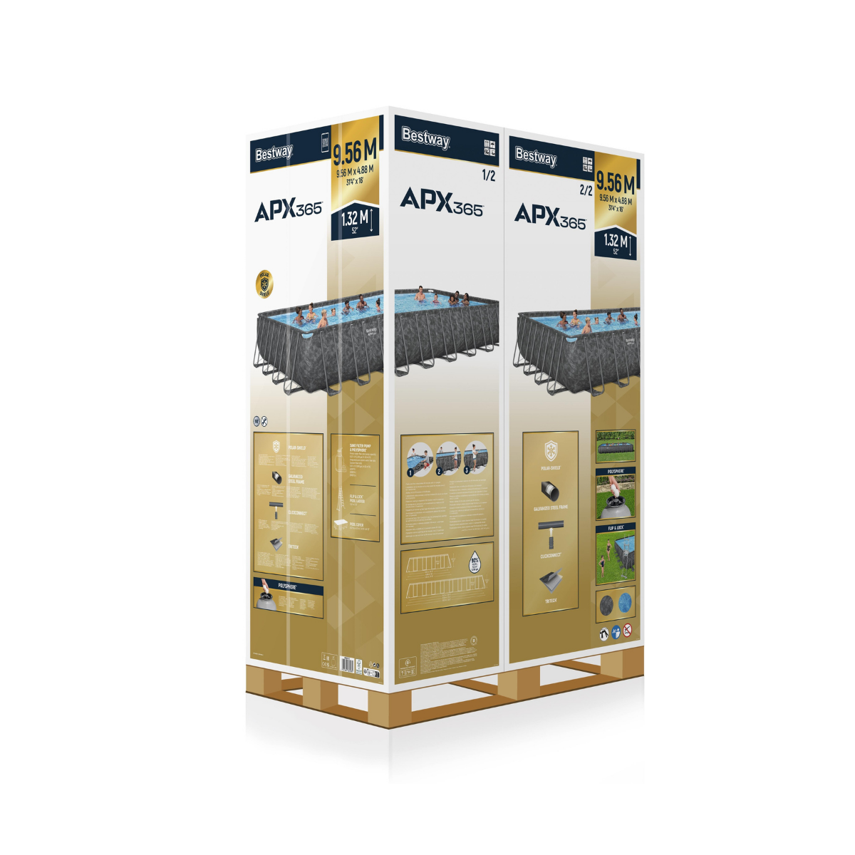 Offrez-vous un grand espace de baignade avec la piscine hors sol Bestway® APX 365 de 9,56 m, conçue pour rester installée toute l’année grâce à sa structure renforcée et son liner Tritech® triple épaisseur. Robuste, stable et facile à entretenir, elle offre un confort idéal pour toute la famille.