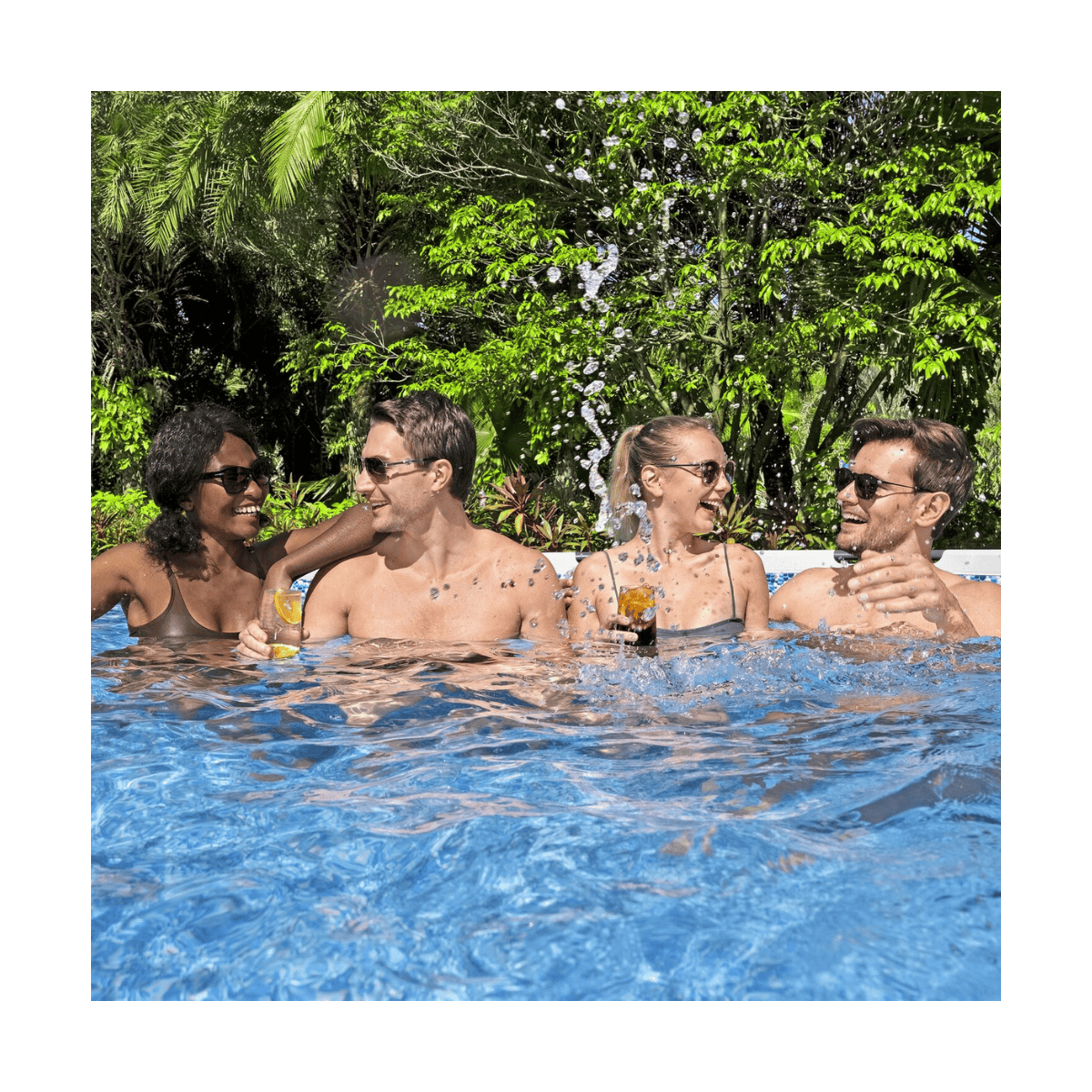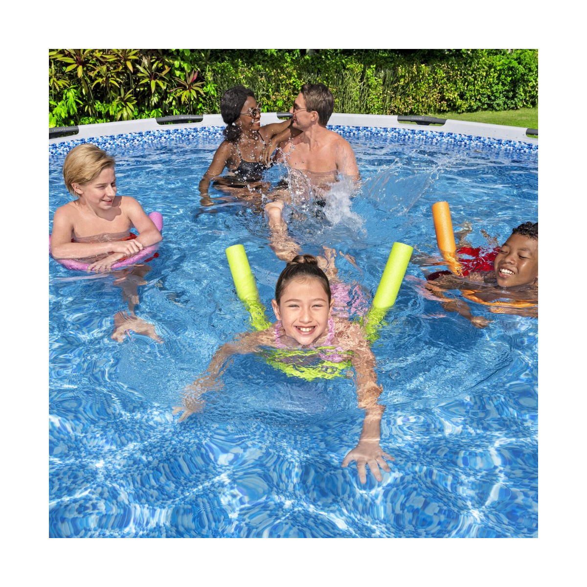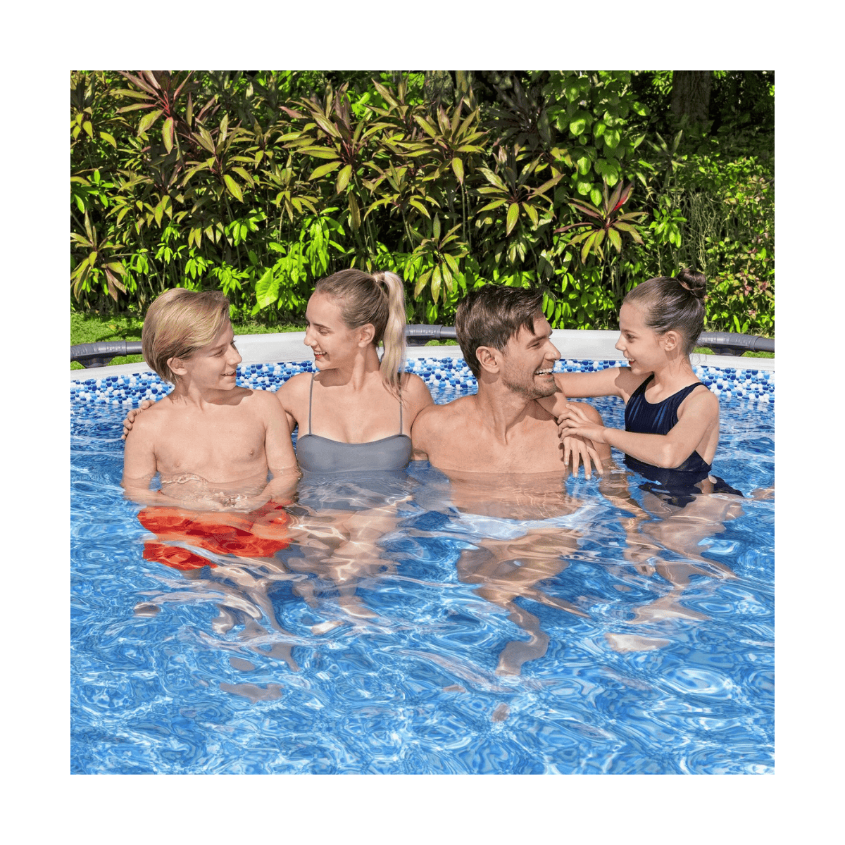 - Livré avec : Filtration à cartouche 3 m3/h, échelle de sécurité, 1 cartouche Bestway Type II, bâche 4 saisons