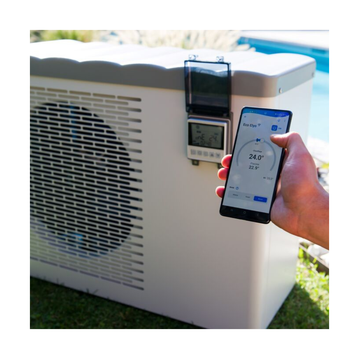 La PAC piscine Eco Elyo intègre une connexion Wi-Fi permettant un contrôle total via l’application Fluidra Pool : réglage de la température, choix du mode, programmation ou suivi de l’état de l’appareil. Une manière simple et moderne de gérer sa piscine depuis son smartphone.