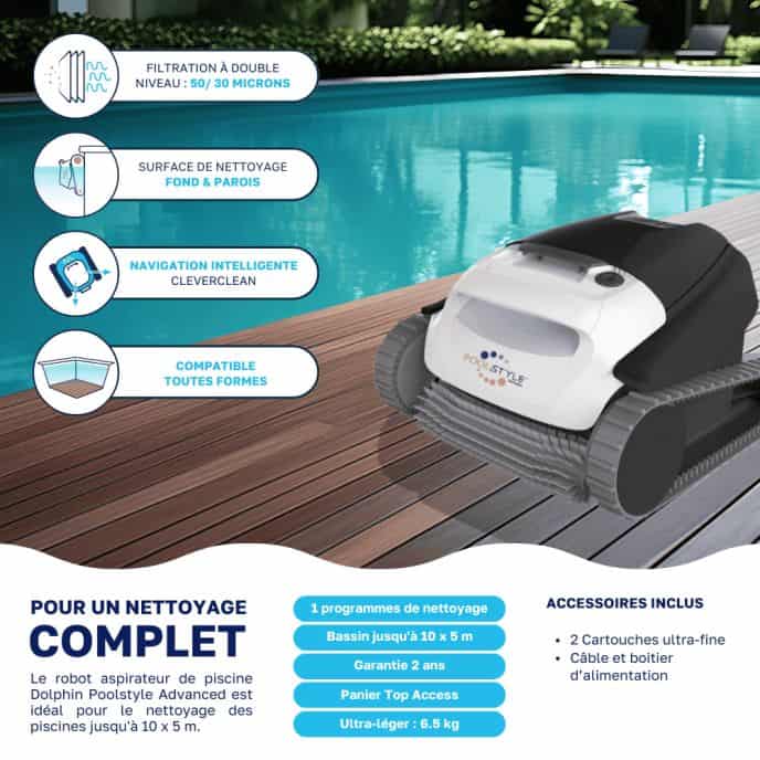 Caractéristiques du robot de piscine Dolphin Poolstyle Advanced