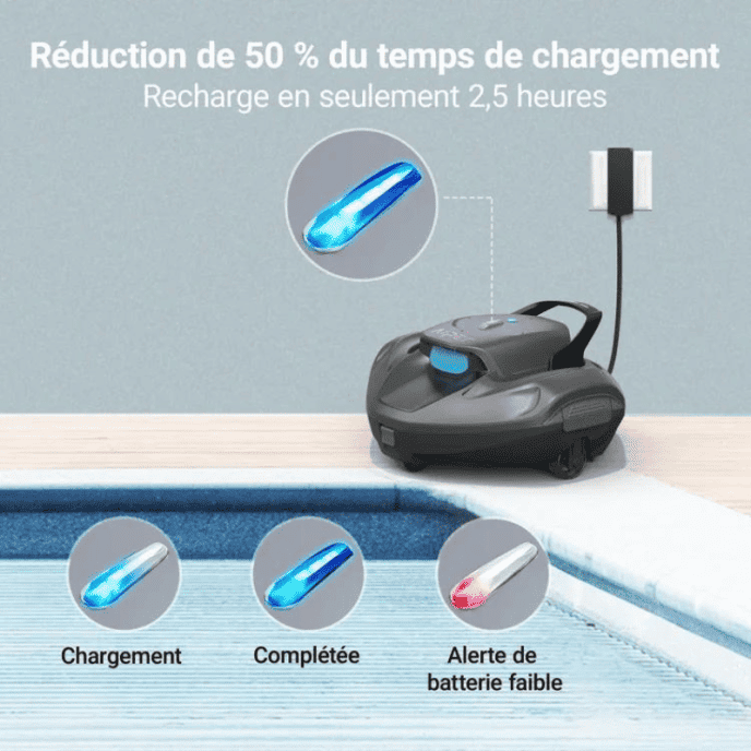 Doté d'une technologie avancée, ce robot piscine sans fil vous offrira une liberté de mouvement et un confort au quotidien remarquable.