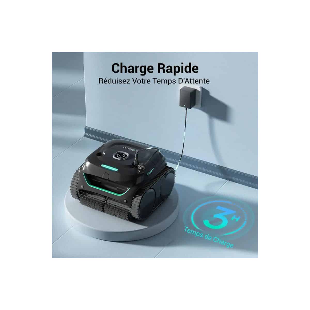 Contrairement aux robots filaires traditionnels, le robot Wybot C2 élimine tous les risques d'emmêlement de câble et vous libère des contraintes de la prise électrique à proximité. Sa batterie longue durée garantit jusqu'à 180 minutes d'autonomie, offrant des performances équivalentes aux meilleurs modèles filaires, sans leurs inconvénients. - 7 modes de nettoyage adaptés à tous les besoins Alors que la plupart des robots concurrents ne proposent que 2 ou 3 programmes, le Wybot C2 offre 7 modes de nettoyage différents : nettoyage complet, fond uniquement, parois uniquement, ligne d'eau, mode rapide, mode intensif et mode personnalisé. Cette polyvalence vous permet d'optimiser l'entretien selon l'état de votre piscine.