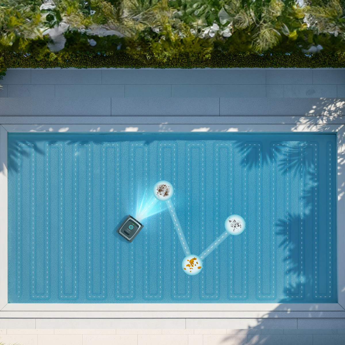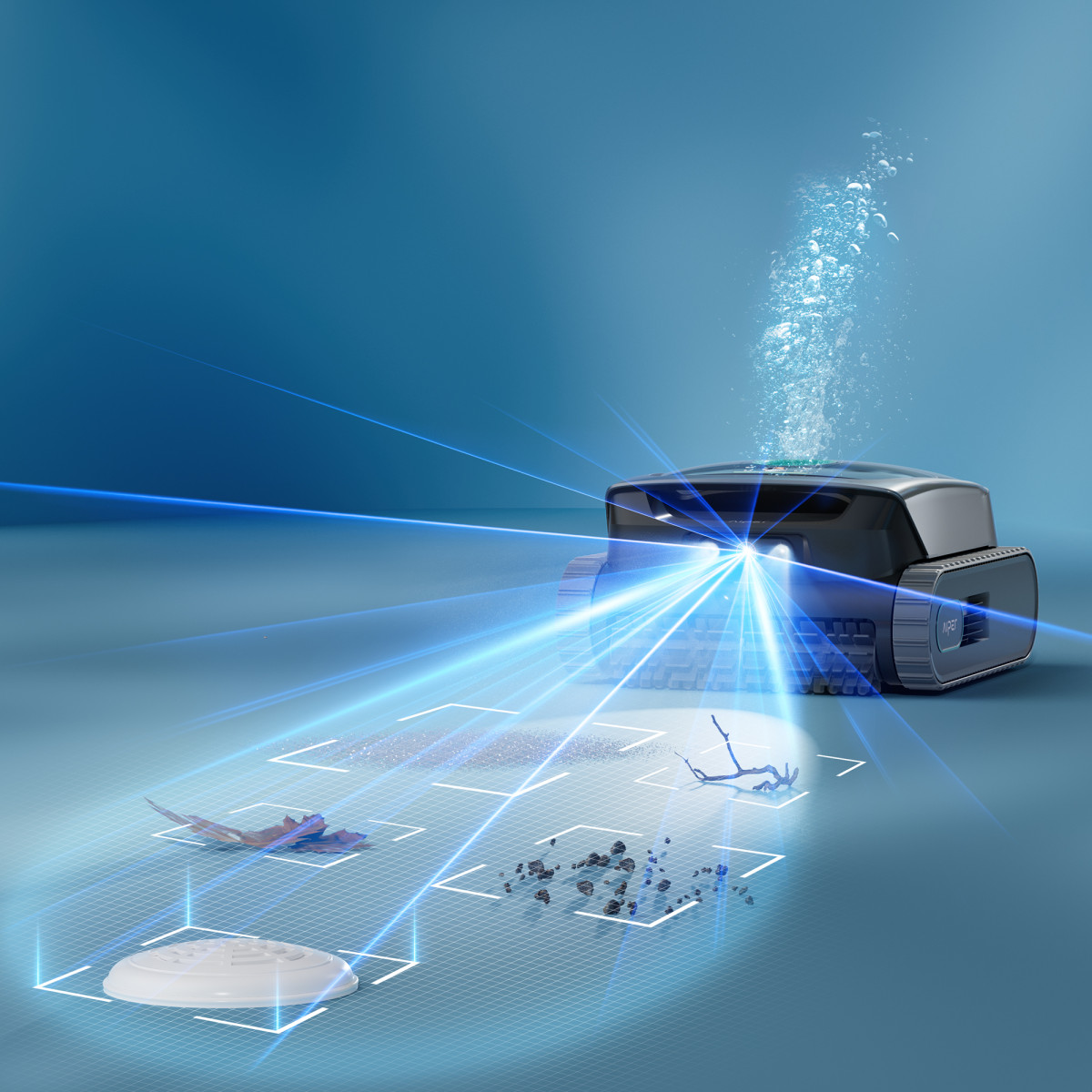 Le robot piscine Scuba V3 est équipé de capteurs dToF avancés associés à la vision IA. Cette combinaison permet une détection des obstacles avant contact. Le robot adapte automatiquement son parcours, évite les blocages contre les parois ou les angles et garantit une couverture homogène du bassin, même dans les piscines à configuration complexe.