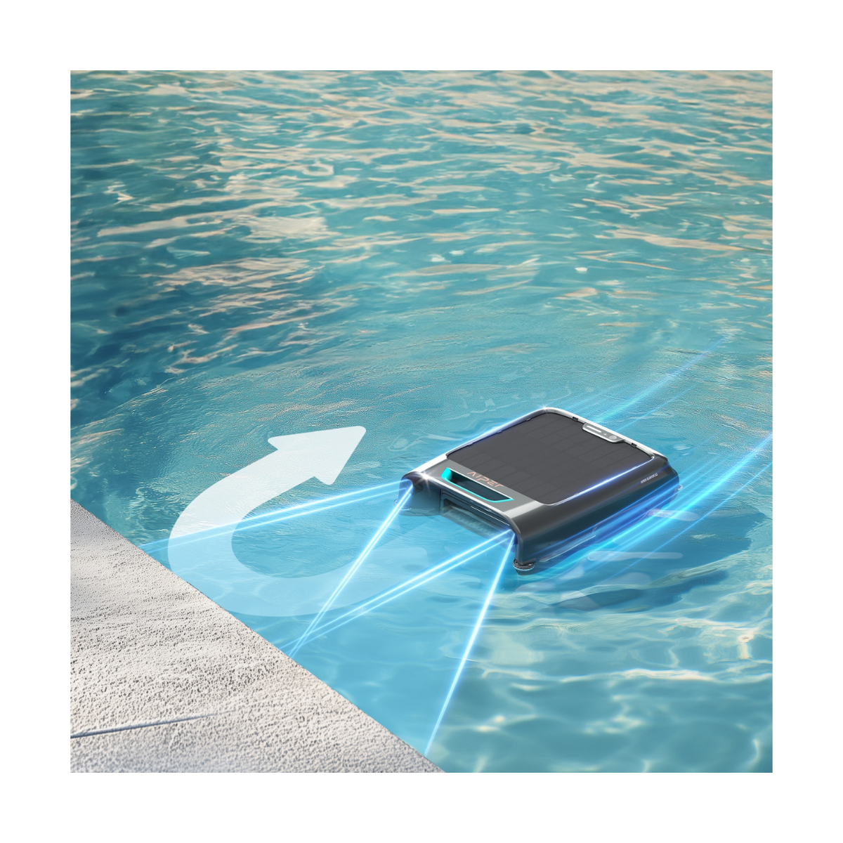 Grâce à ses deux capteurs optiques, le robot de surface connecté Aiper détecte efficacement les obstacles présents à la surface. Il est capable de modifier sa trajectoire ou de se dégager seul en cas de blocage.