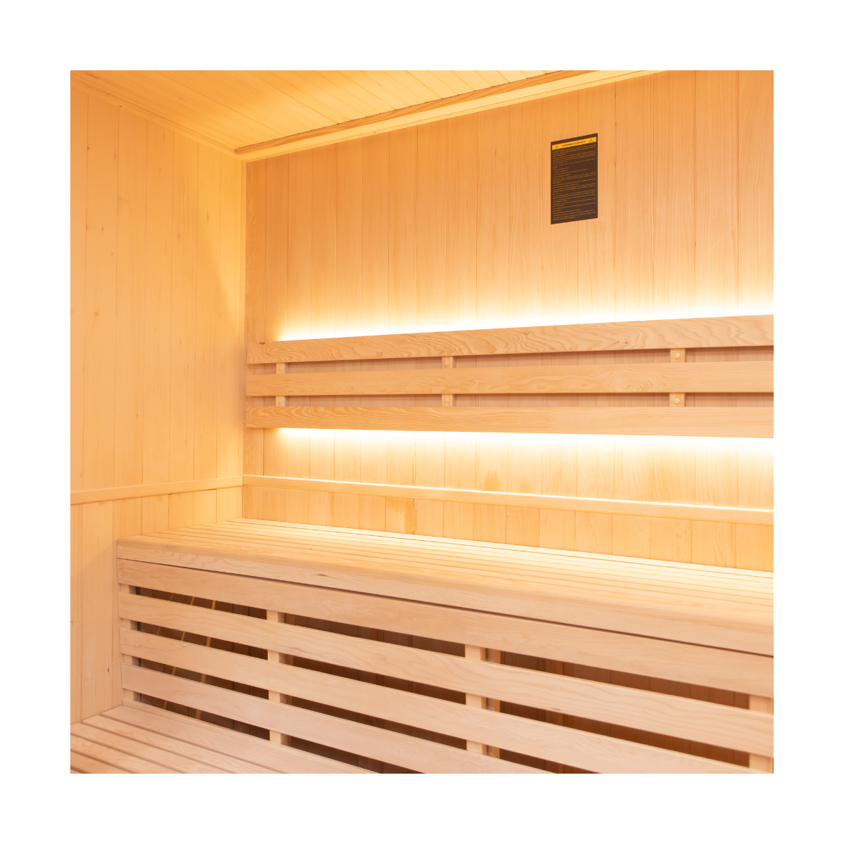 Le sauna à vapeur finlandais accessible à tousLa gamme de sauna Zen offre un espace de détente exceptionnel dans la pure tradition finlandaise. Conçu en véritable Épicéa du Canada, au parfum doux et relaxant, le sauna Zen offre un design naturel et élégant. Facile à monter grâce à un système de panneaux clipsables, il se monte en moins 20 minutes. La cabine Zen est livrée avec son poêle électrique Harvia et ses pierres de lave. Il génère une vapeur chaude et agréable dans la cabine et assure une montée en température rapide et efficace. Les équipements du sauna vapeur Zen vous permettront de profiter pleinement de vos séances dans le pure style traditionnel : luminaire tamisé, seau, louche, thermomètre et hygromètre, sablier, ... Le sauna Zen associe un prix abordable, un design élégant et de nombreux équipements de série, qui en ont fait un véritable best-seller ces dernières années. Il se décline en 4 dimensions de 2 à 4 places, pour répondre à tous les besoins. |
