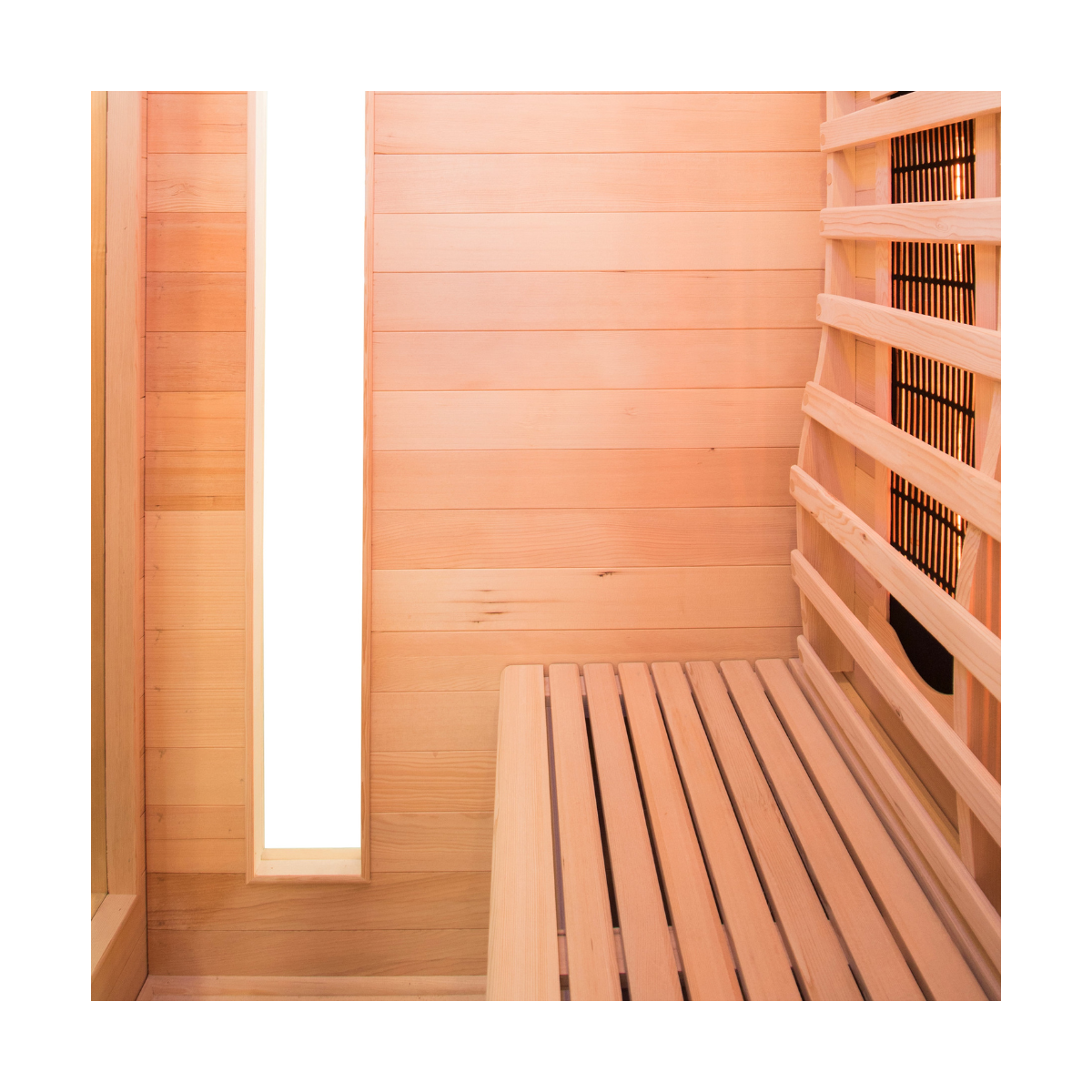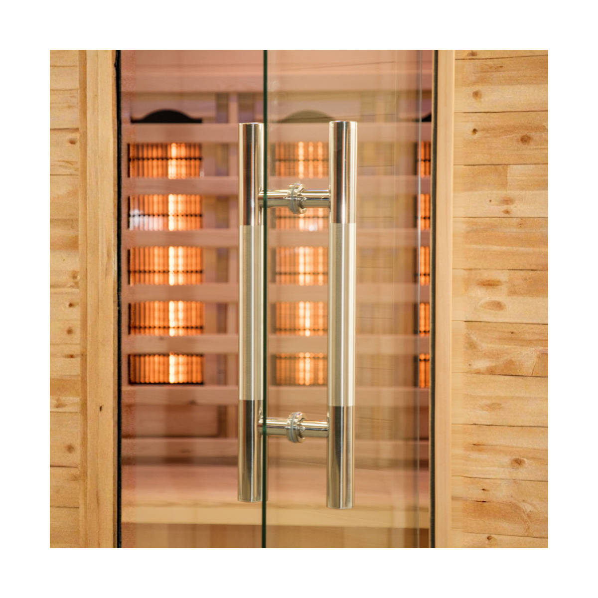 Finitions poignées designLes belles poignées métalliques et leur finition brossée ajoutent une touche contemporaine et élégante à votre sauna infrarouge. |