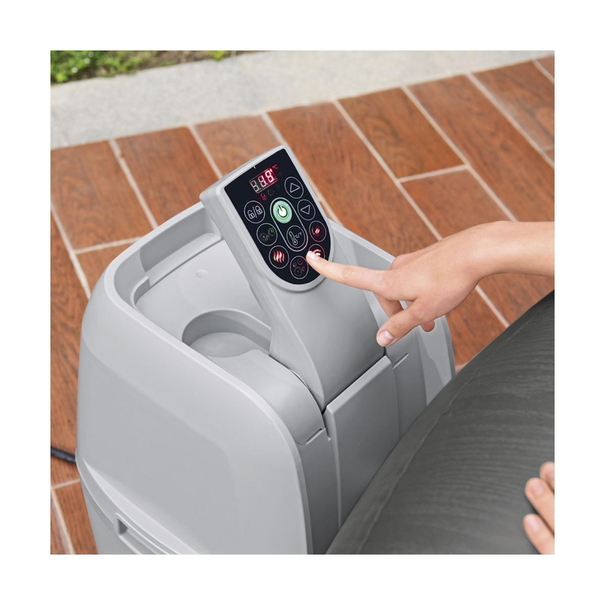 - Panneau de contrôle inclinable: bloc moteur déporté avec panneau de contrôle inclinable (accessible directement depuis le spa) et porte gobelet intégré