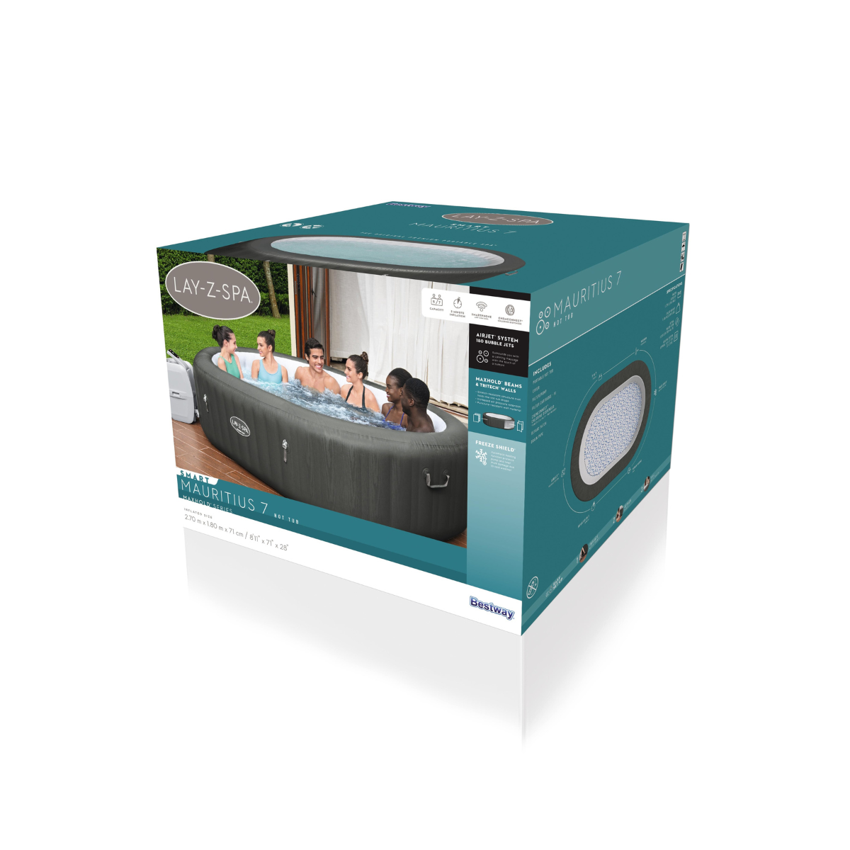 Après une longue journée ou une séance de sport intensive, délassez-vous en toute sérénité dans le spa à bulles Mauritius et profitez de ses 180 buses hydromassantes pour vous détendre durablement. Conçu pour accueillir 5 à 7 personnes grâce à sa forme ovale (unique et inédite sur le marché) vous pourrez convier amis et famille à se joindre à vous confortablement sans être à l'étroit. Vous pouvez choisir de l'installer en intérieur (dans une véranda par exemple) ou optez pour une installation extérieure sur votre terrasse. Ce spa gonflable dispose de la technologie FreezeShield qui lui permet de fonctionner de manière automatique l'hiver, lorsque la température descend sous un seuil programmable afin d'éviter que le gel n'endommage la structure. Plus aucune raison de ne pas en profiter à l'année !