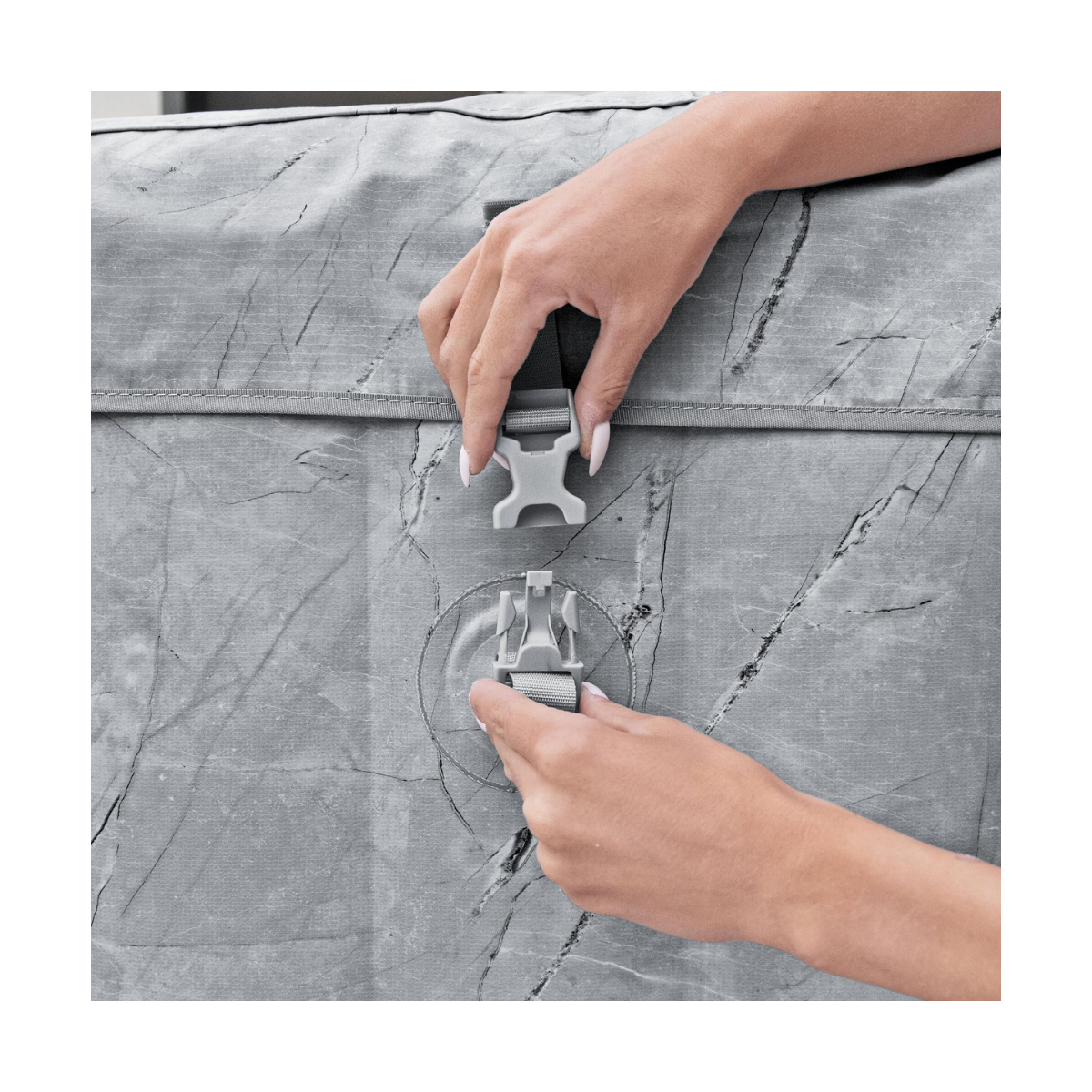 La structure robuste de nos spas a été conçue pour assurer une stabilité structurelle tout en préservant une surface douce et confortable. Votre spa gonflable gardera sa forme initiale quel que soit le nombre de gonflages et dégonflages.