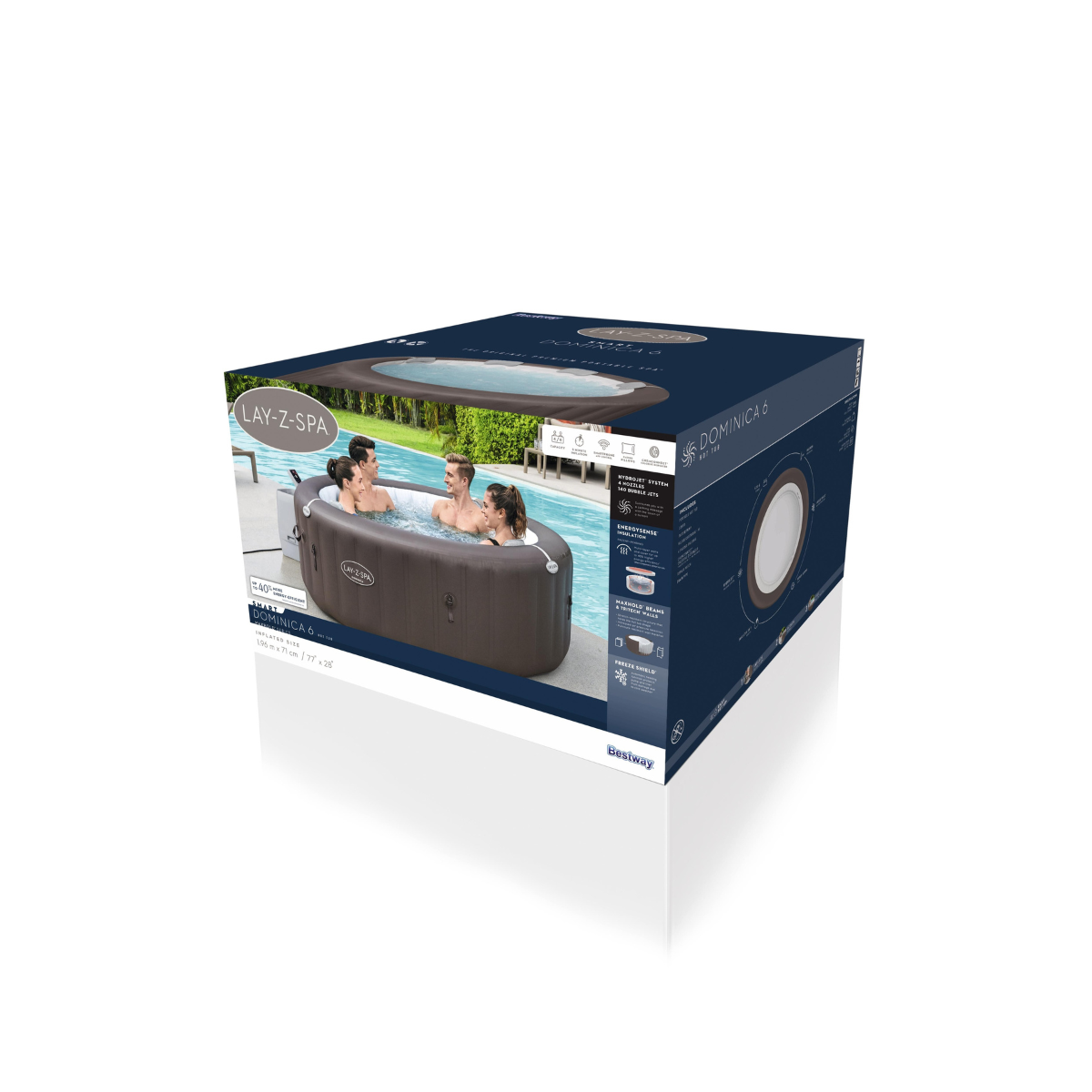 L’une des innovations majeures du Lay-Z-Spa Dominica HydroJet est son système d’isolation thermique EnergySense. Conçue en matériaux multicouches isolants, cette technologie réduit les pertes de chaleur et permet une économie d’énergie allant jusqu’à 40 % par rapport aux spas gonflables traditionnels.