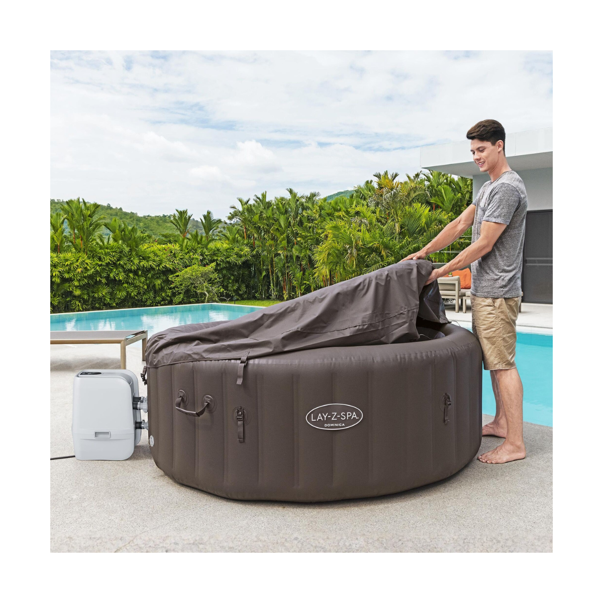Pour garantir une utilisation en toute sécurité, le Lay-Z-Spa Dominica HydroJet est équipé d’un système de mise à la terre et d’une prise sécurisée, réduisant les risques électriques.