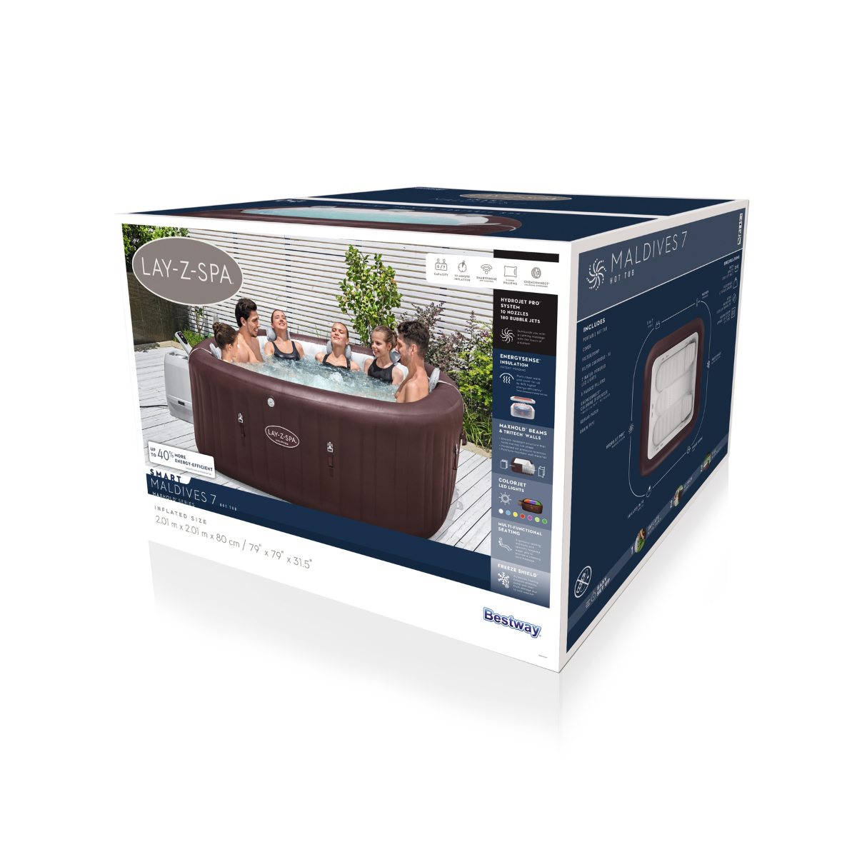 Spa gonflable Bestway Lay-Z-Spa Maldives carré 5 à 7 places Hydrojet Pro