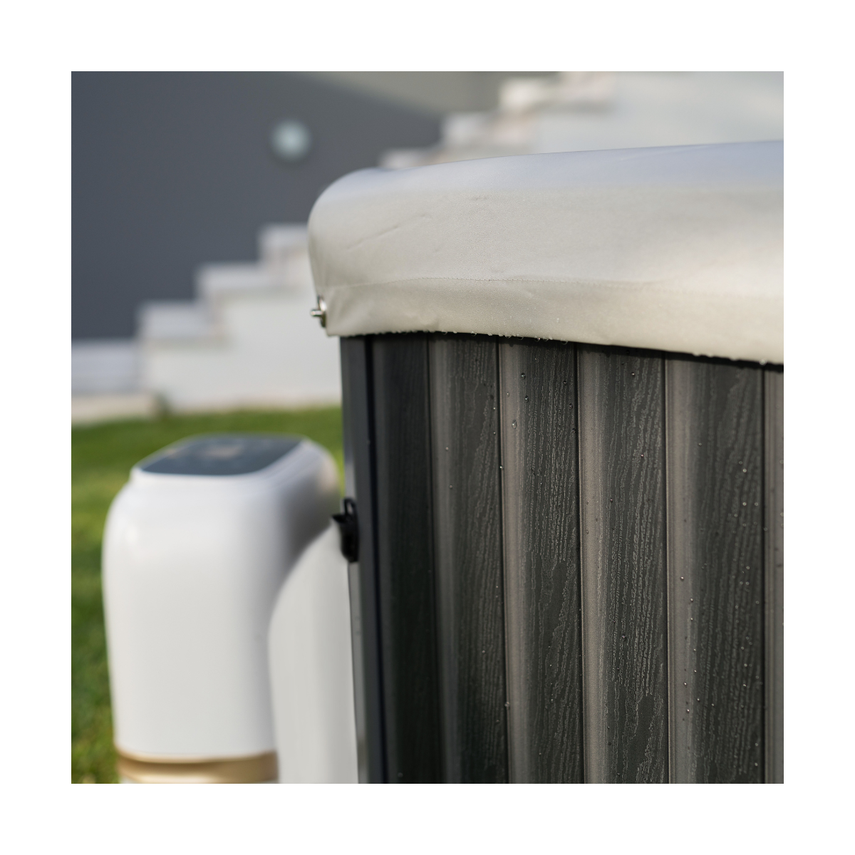 Grâce à sa structure en panneaux PVC imitation bois et à son boîtier moteur digital tout-en-un, le spa s’intègre parfaitement dans un jardin, sur une terrasse ou dans un espace bien-être dédié.